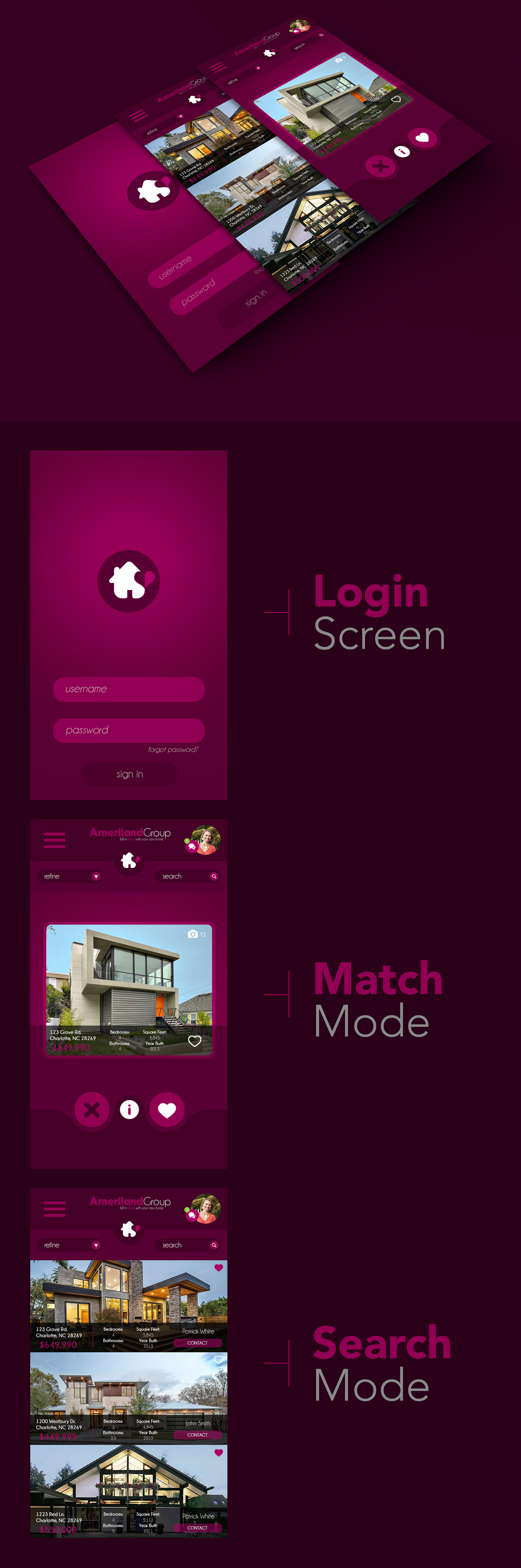 Realty App designed based on the style of Tinder!